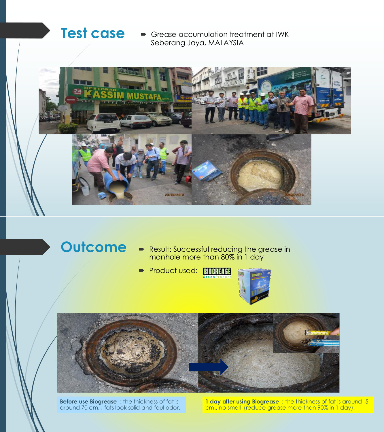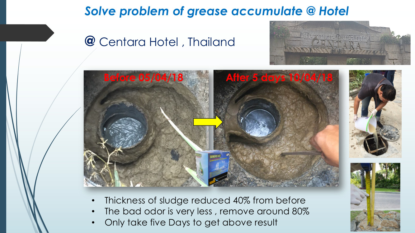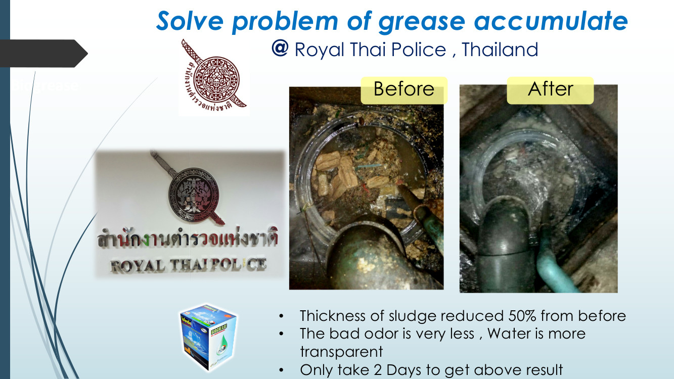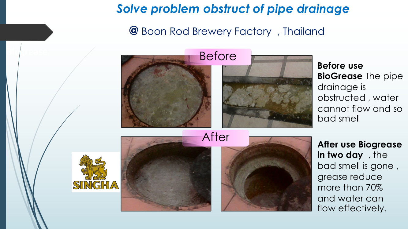 Bio Grease is an innovative integration of biotechnology (Selected microbial strains) and nanotechnology. (Catalyst of substance and special enzyme for digest fat). Use to eliminate odors and grease, prevent grease accumulation and resolve the obstruction in the pipe drainage. Use in wastewater treatment system both aerobic and anaerobic condition. Protect the environment and restoring the water balance without using chemicals.